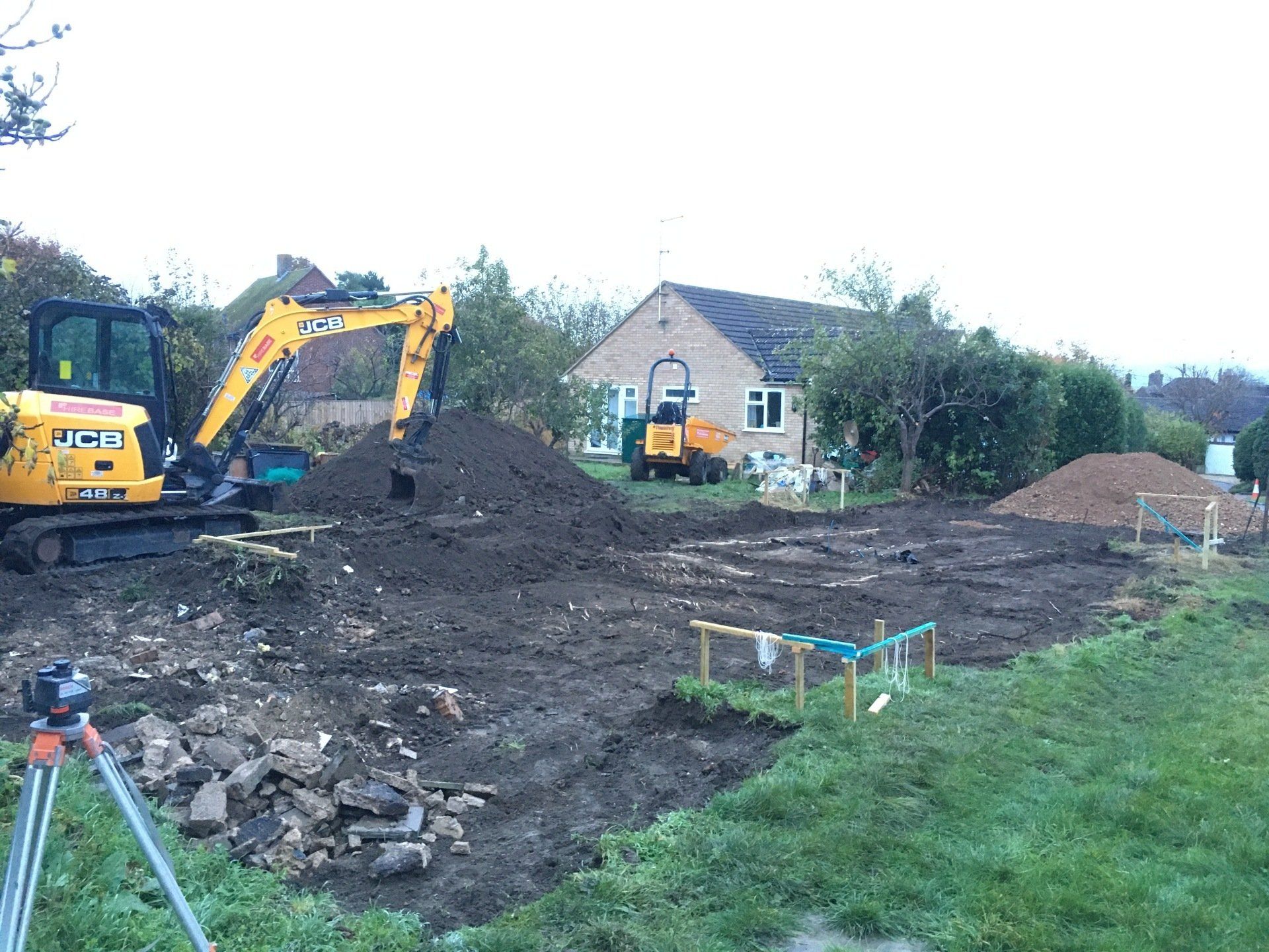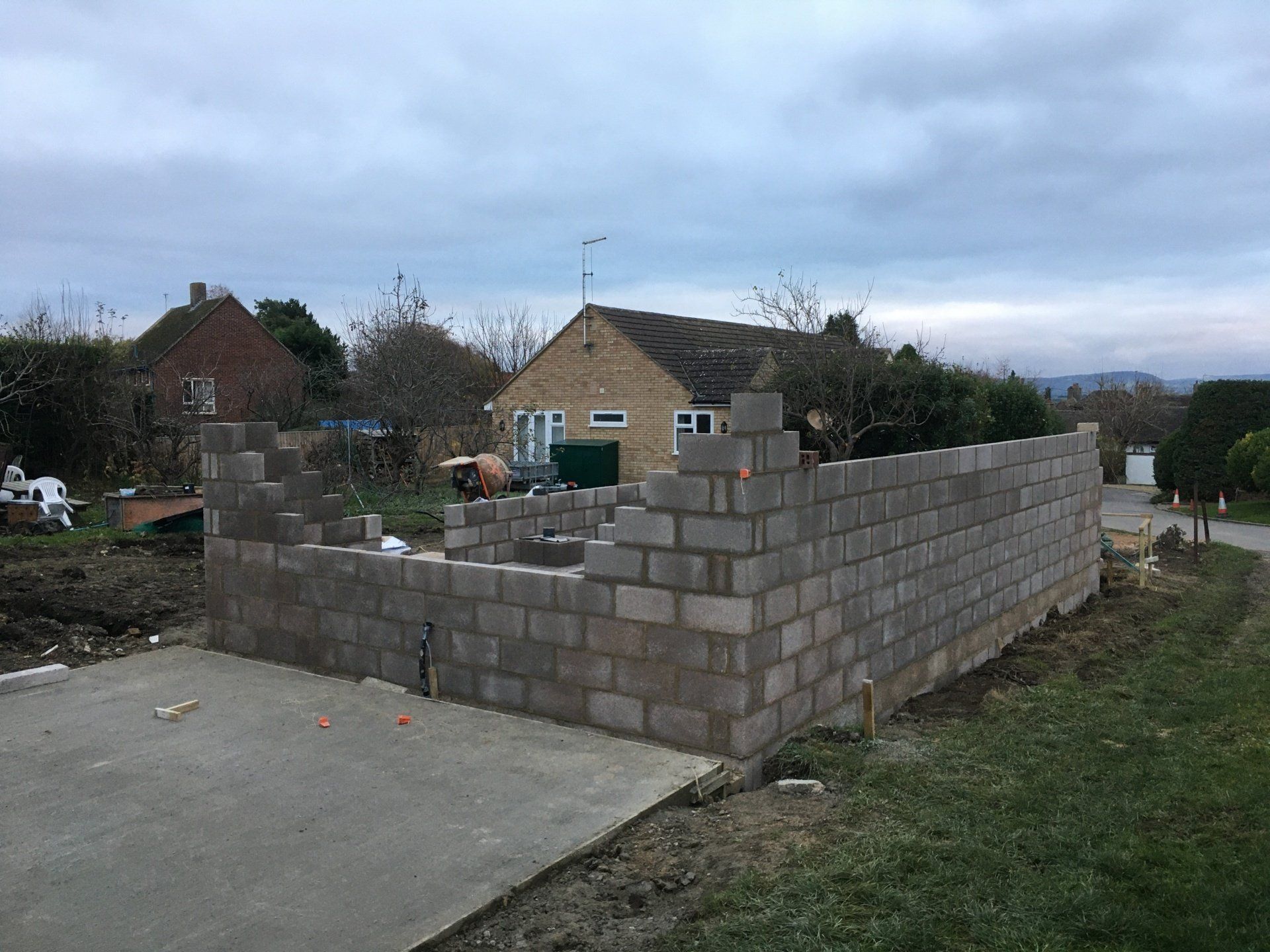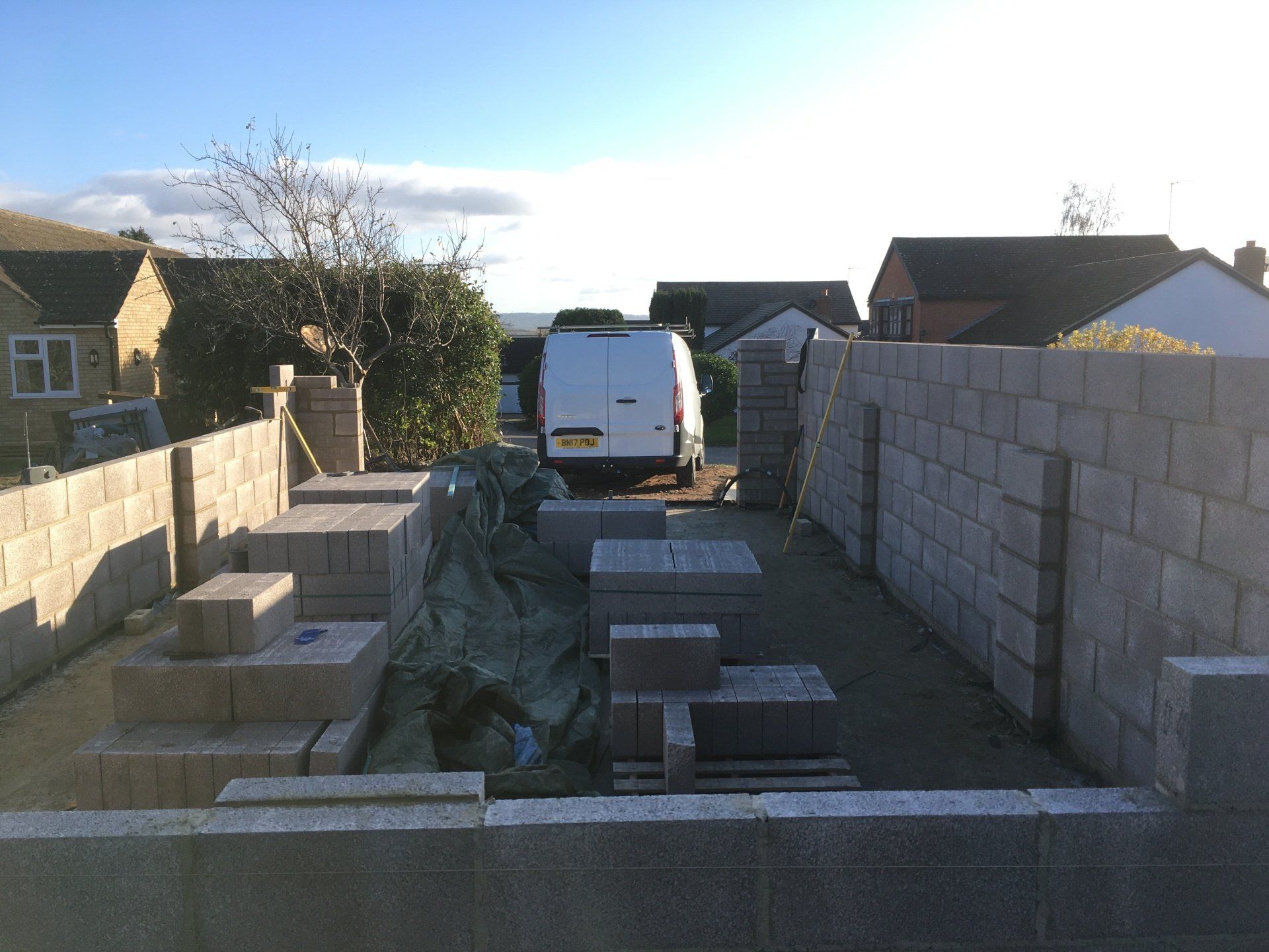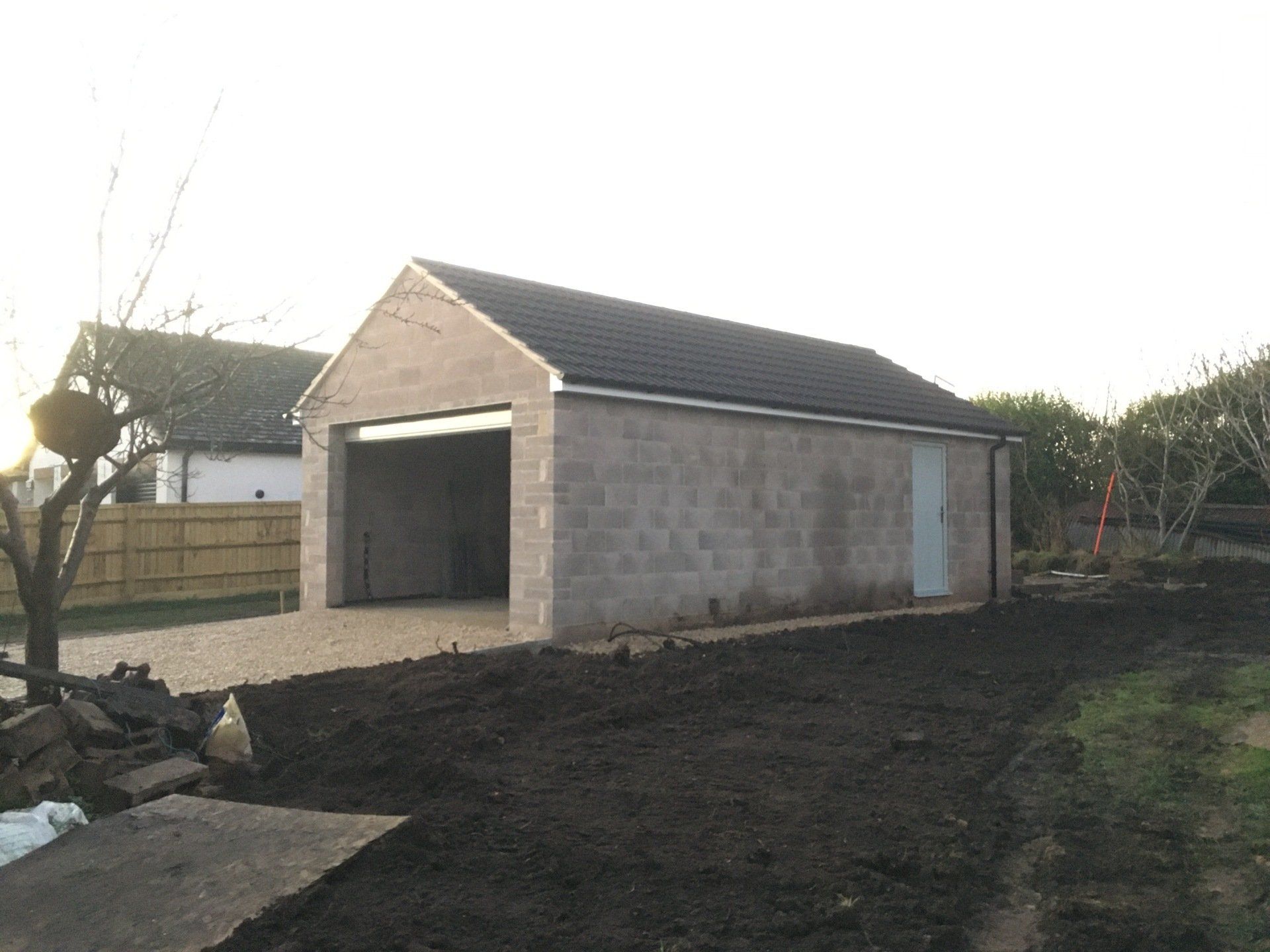Here are some gallery photos taken during a recent garage build in Buckinghamshire. The project required the removal of an existing greenhouse and several fig trees*. The greenhouse had some substantial footings consisting of concrete and concrete hollow blocks. These were removed in the process of digging the new foundation. The new proposed footprint was 45 square metres (485 sq ft)- which given the size fitted nicely on the existing plot. A further concrete slab was provided at the rear of the garage along with water connections at the rear and inside via mdpe pipework and copper/brass fittings. Electricity was also provided via an SWA cable along with additional cables for security devices. The entire project was completed to the client's requirements along with some additional works to add a gravel driveway.